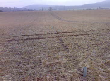 Ausgangszustand waren die bereits eingebrachten Hülsenfundamente, bestehend aus je vier Stahlhülsen pro Modul. Unser Auftrag war es, alle Hülsen lage- und höhenmäßig im amtlichen Koordinatensystem einzumessen. Als Ergebnis konnten dem Auftraggeber detailierte digitale Daten als Grundlage für die weitere Planung der Module übergeben werden. So wurden durch unser Büro mit einem Messtrupp in nur zwei Tagen ca. 4500 Messpunkte erfasst. Dies bedurfte der Konstruktion einer speziellen Messvorrichtung, um die Zentren der Hülsenfundamente exakt bestimmen zu können.