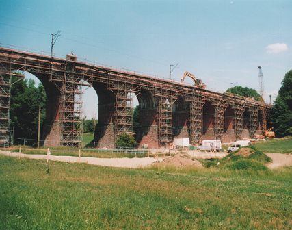 Das Viadukt wird komplett eingerüstet.