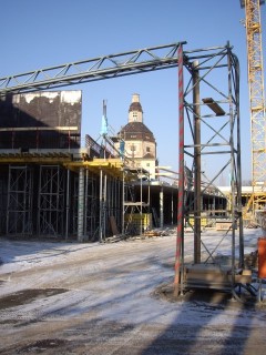 In der unmittelbaren Nachbarschaft der Neuen Messe Dresden entstand eine moderne Sportschule im Ostragehege. Auch eine Sporthalle wurde hier errichtet. Wir führten im Auftrage der Firma Dreßler Bau GmbH die Bauvermessung für dieses Projekt aus. Besonders für den Stahlbau waren genaue Vermessungen notwendig.